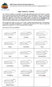 Selecting countertop edging, also referred to as edge treatments, is an important part of your bathroom or kitchen remodeling project.  The edge profile is a defining feature of the room.  Deciding on the countertop edging that is right for you requires some basic knowledge of material types and what’s available.