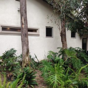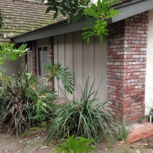 The stucco water intrusion damage was significant and required substantial demolition and rebuilding to a large section of the home. Moreover, a tractor was brought in to remove almost 10 cubic yards of soil. Plants, sprinkler system, low voltage lighting and 3 mature trees were removed to get the soil down and away from the home. The beautiful custom wood windows were removed because Subterranean Termites along with other nasty organisms ate them up along with most of two sides of the house.